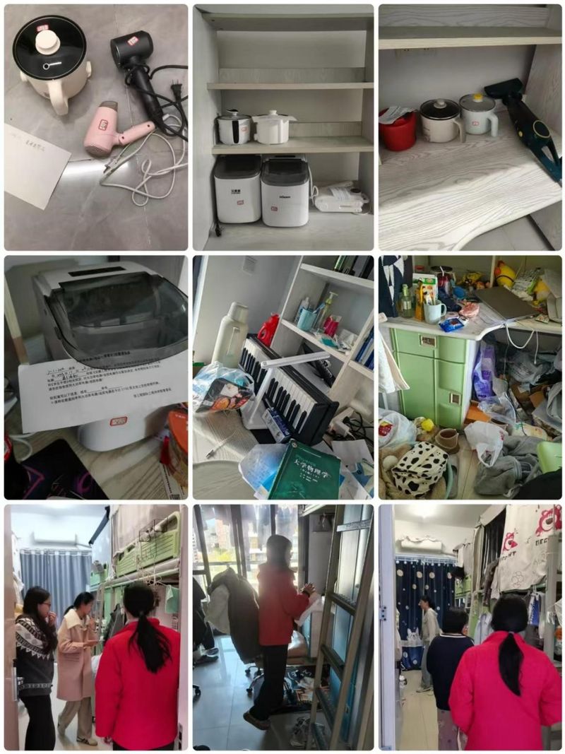 此次活动为期半个月,聚焦违规电器使用核心环节,秉持“全覆盖、零容忍、严整改”原则,组建由后勤科室人员及物业骨干构成的检查小组,逐楼逐层、逐间逐位开展拉网式排查。检查重点围绕安全隐患排查,严查学生书院内违规使用大功率电器、私拉乱接电线等行为,对查处的电吹风、电煮锅等违禁物品当场登记收缴,并向涉事学生出具违规物品没收通知单,细致宣讲宿舍安全管理规定,提醒大家规范用电、爱护环境,养成良好的安全习惯。针对排查发现的问题及违规情况向相关部门和学院通报,确保隐患动态清零。